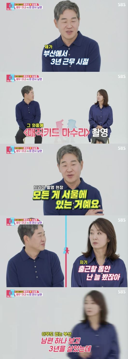 이성호는 “부산에 살 때였다. 두 아이를 키워야 하는 엄마로서, 집안일이 많을 때이기도 했다. 어린이 드라마를 한다고 하더라. 지나고 보니 드라마 촬영 현장이 모든 게 서울에 있더라. 아이 둘만 나에게 맡겨 놓고 혼자 촬영을 하고 오는 경우가 있었다. 그때 너무 힘들었다”라고 덧붙여 웃음을 자아냈다.