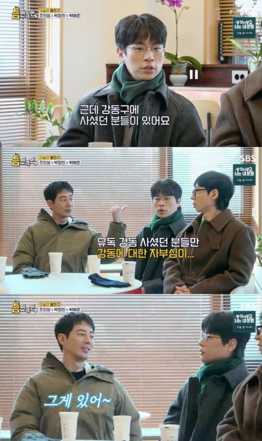 지난 3일 방송된 SBS 예능 ‘틈만 나면,’에는 영화 ‘휴민트’의 주역 조인성, 박해준, 박정민이 출연해 유재석, 유연석과 함께 강동구에서 하루를 보냈다.