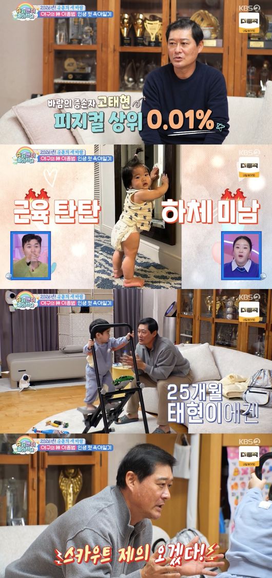 4일 방송된 KBS 2TV 예능 ‘슈퍼맨이 돌아왔다’에서는  ‘바람의 아들’ 이종범과 ‘바람의 증손자’ 생후 25개월 고태현이 첫 등장했다.
