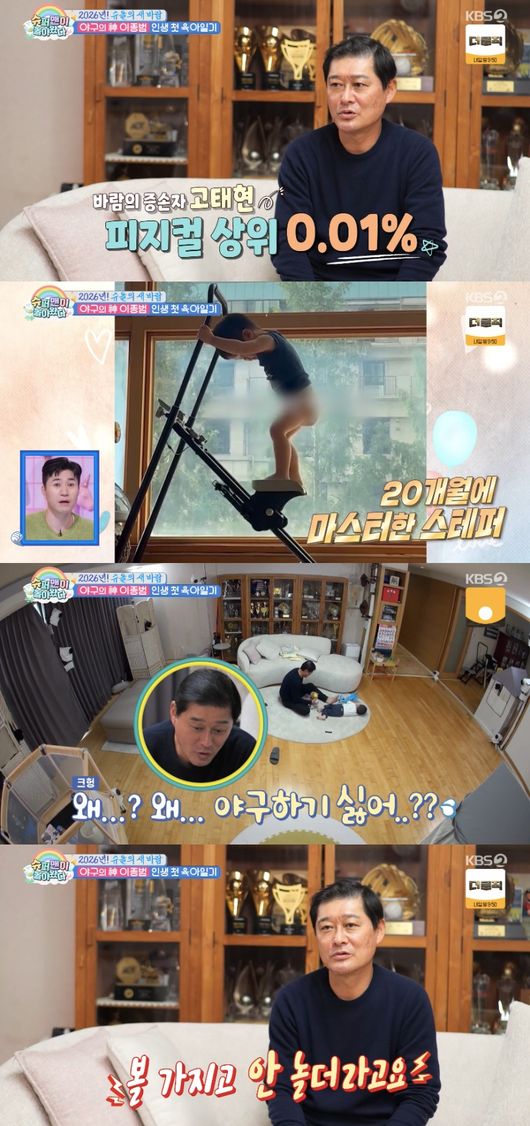 ‘바람의 子’ 이종범, ‘피지컬 상위 0.01%’ 손자에..“야구해야지” 강요 (‘슈돌’)