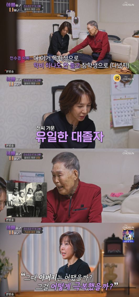 4일 방송된 TV CHOSUN 예능 ‘아빠하고 나하고’에서는 전수경 부녀의 일상이 그려진 가운데 전수경 아버지가 두 아들을 떠나보낼 수 밖에 없던 사연을 전했다.