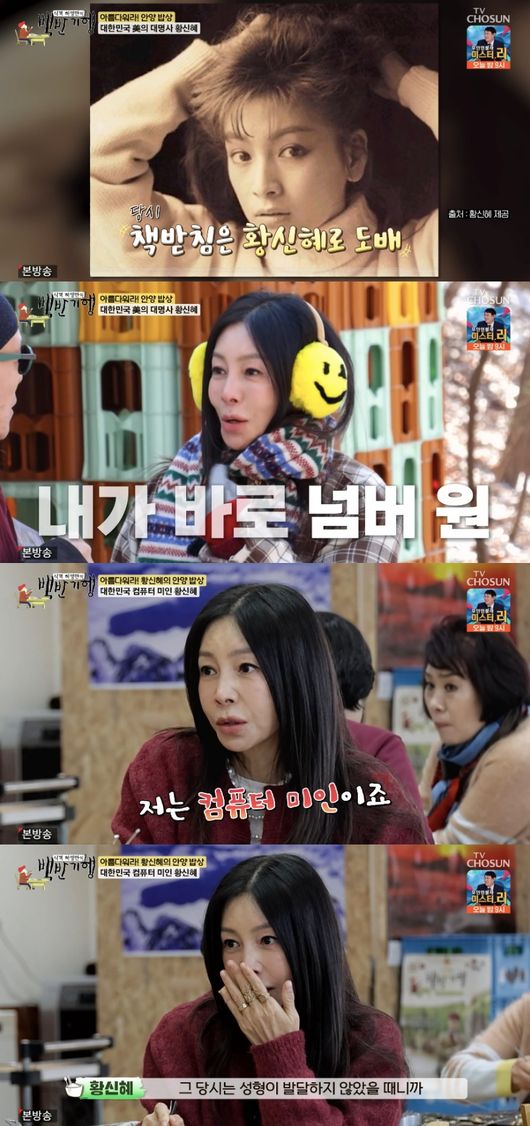 허영만은 “원래 공주 아니냐. 황신혜하면 공주 아니면 바비인형?”이라고 물었다. 이에 황신혜는 “그런 말 처음 들어본다. 저는 컴퓨터 미인이죠”라고 받아쳐 웃음을 자아냈다.