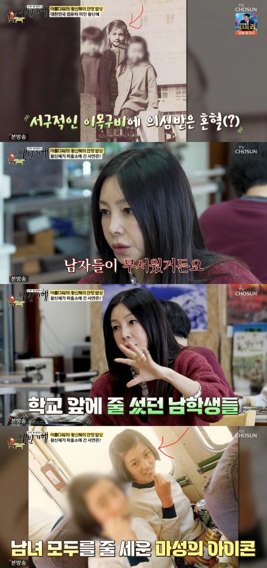 이날 황신혜는 책받침 속 과거 자신의 얼굴을 보더니 “와 진짜 예쁘다. 아기다 아기. 얘가 예쁘다”라며 자화자찬했다. 이에 허영만은 “책받침 라이벌 누구냐”라고 물었고, 황신혜는 “없었다. 저 하나였다”라고 솔직하게 밝혔다.