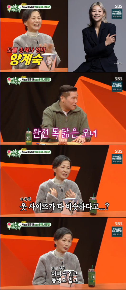 8일 전파를 탄 SBS ‘미운 우리 새끼’(이하 ‘미우새’)에서는 모델계와 예능계를 접수한 만능 엔터테이너 송해나의 어머니가 스튜디오에 등장했다.