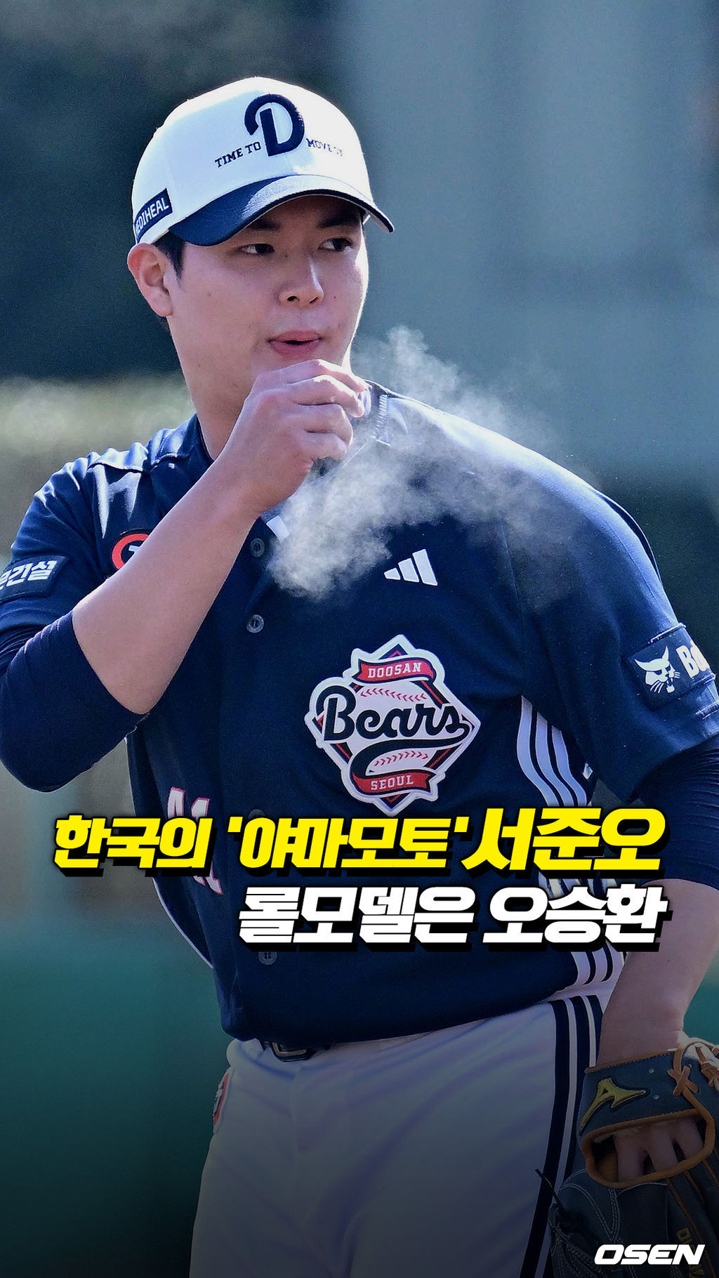 한국의 야마모토라는 타이틀을 얻은 두산 신인 서준오가 일본 미야자키 캠프에서 구슬땀을 흘리고 있다.