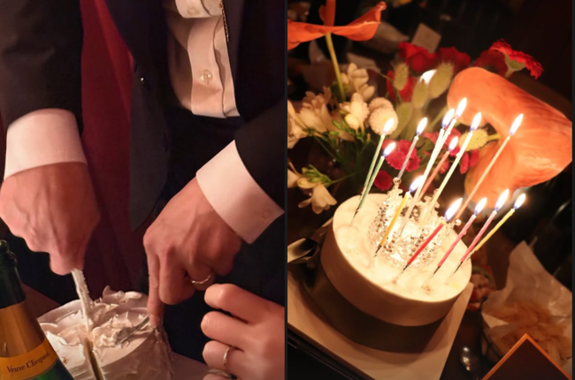 수트를 차려입은 류화영의 예비신랑은 직접 케이크를 커팅했고, 그의 손에는 류화영과 같은 디자인의 커플링이 자리하고 있어 눈길을 끈다.