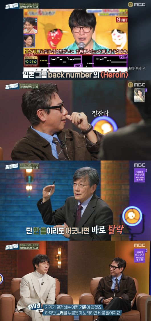 이때 스튜디오에는 성시경이 노래를 부르는 영상이 공개됐다. 이를 본 윤종신은 “잘한다. 힘든데 저거”라며 감탄했고, 손석희는 “한 음이라도 어긋나면 탈락이라던데”라고 물었다.