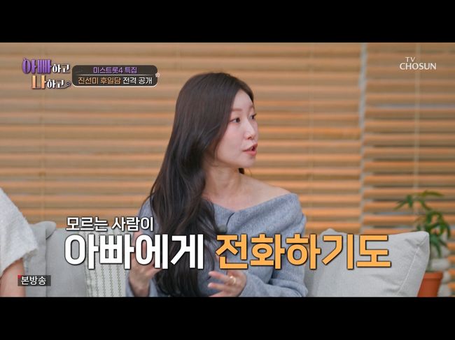1일 방영된 TV CHOSUN '아빠하고 나하고’(이하 ‘아빠나’)에서는 '미스트롯4'의 진선미 이소나, 허찬미, 홍성윤이 등장했다. 이들은 경연 대회에서 이들을 지지하고 있던 가족들에 대한 사랑을 전했다. 특히 홍성윤과 허찬미 등은 '아빠하고 나하고'의 출연에 대해 가족들이 기대한다면서 기뻐했다.