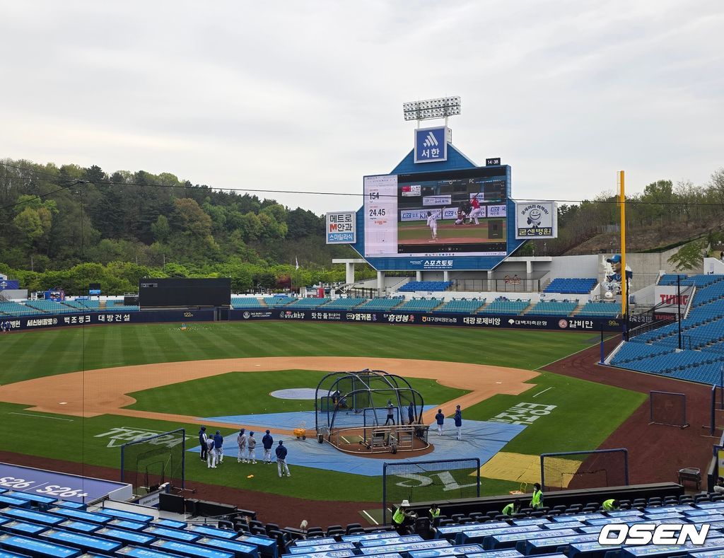 오후 2시 40분, 얼리 워크조로 나선 삼성 타자들이 타격 훈련을 실시할 때 전광판에는 LG 선발 투수 임찬규의 투구 영상이 틀어졌다.