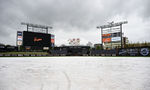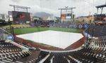 [OSEN=대전, 이대선 기자] 12일 오후 6시 30분 대전 한화생명 볼파크에서 열릴 예정이던 한화 이글스와 키움 히어로즈의 경기가 우천으로 취소됐다. 내야에 대형 방수포를 덮으며 경기를 준비했지만, 빗줄기가 멈추지 않았고 밤까...