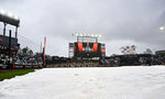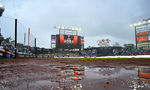 [OSEN=대전, 민경훈 기자] 28일 오후 대전 한화생명볼파크에서 2025 신한 SOL Bank KBO리그한화 이글스와LG 트윈스의 경기가 열릴 예정이지만 그라운드에 비가 내리고 있다.프로야구 LG 트윈스의 정규리그 우승 확정이 걸린 대전 경기...