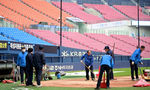 [OSEN=잠실, 이후광 기자] 비가 그친 잠실구장이 오후 2시 정상 개최를 위해 그라운드 정비에 돌입했다. 다만 정비에 시간이 다소 걸려 30분 지연 개시가 결정됐다.두산 베어스는 28일 오후 2시 서울 잠실구장에서 열리는 2025 신한 SO...