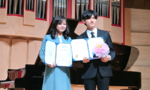 <사진>콩쿠르를 주관한 AYMS 대표 안양대 음악학과 사공유정 교수(좌)와 전체 대상 수상자인 안양예술고등학교 피아노 서다니엘 학생이 기념사진을 촬영. (영산아트홀)안양대학교(총장 장광수) 음악학과 사공유정 교수가 대...