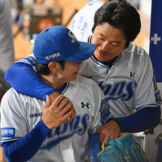 2026.04.01 19: 41호수비 김지찬, 양창섭 너무 좋아 진한 포옹