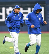 이대호-김태균, '고척돔 첫 실전 앞두고 워밍업'