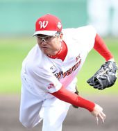 상무 임지섭-이윤재 배터리, '네덜란드 강타선 쉽지 않네'