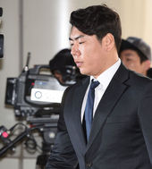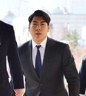 법정으로 향하는 강정호,'어두운 표정'