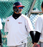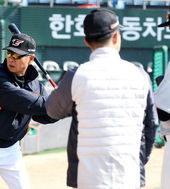 로사리오 타격지도하는 김성근 감독