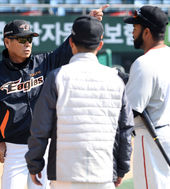 선수들 지도하는 김성근 감독