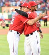 개막전 지명타자 출전 추신수,'배니스터 감독과 포옹'