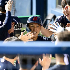 노진혁 득점에 기뻐하는 롯데 더그아웃