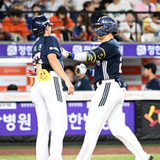 롯데 황성빈과 솔로포 기쁨 나누는 이호준