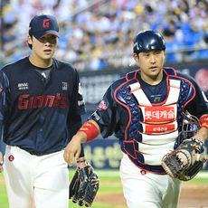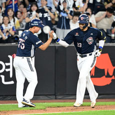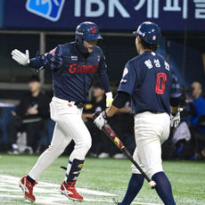 롯데 김태형 감독과 솔로포 기쁨 나누는 이호준