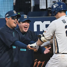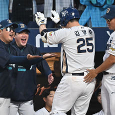 김형준 홈런에 기분 좋은 이호준 감독과 코치진