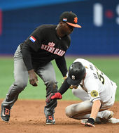 상무 도루 저지하는 네덜란드