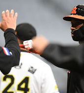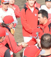 힐만 감독,'최정의 손 꼭 잡은 두 손'