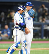 심창민-양의지 배터리, '5회, 무실점으로 넘겼어'