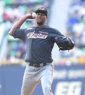 김태균 삼진 잡아내고 기뻐하는 유희관