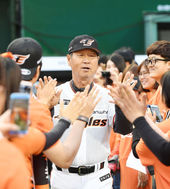 김성근 감독,'환한 미소로 한화 팬들과 하이파이브'