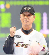 김성근 감독,'꽃다발 들고 힘찬 파이팅'