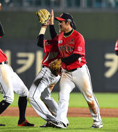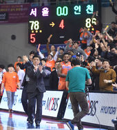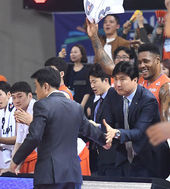 6강 3차전 승리 거두고 기뻐하는 유도훈 감독