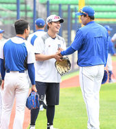 민병헌, '라이온킹' 이승엽 손 꼭잡고