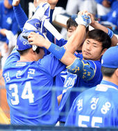 김헌곤 역전타 축하하는 삼성 더그아웃