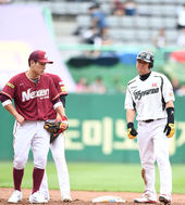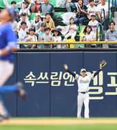 민병헌, '박해민 타구가 펜스 틈에 박혔어요'