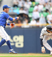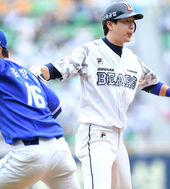 역전타 날린 박건우, '3루까지 훔쳤다'
