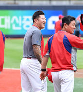 박흥식 코치-김진욱 감독,'오늘 멋진 경기 펼쳐요'