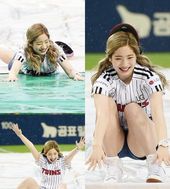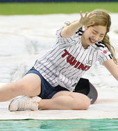 [오!쎈 움짤]트와이스 다현,'시구 대신 시원한 우천 슬라이딩'
