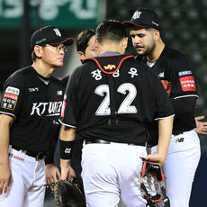 마운드 방문해 선발 헤이수스 다독이는 KT 이강철 감독