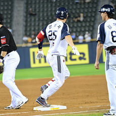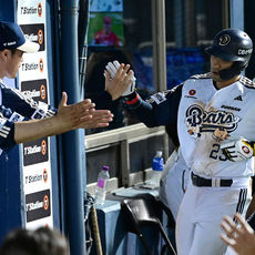 케이브와 추격의 솔로포 기쁨 나누는 강승호
