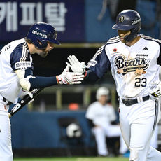 '추격의 솔로포' 강승호 맞이하는 두산 조성환 감독대행