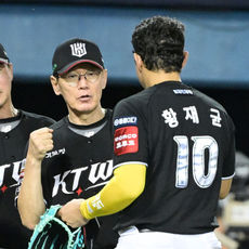 승리 거둔 KT 이강철 감독, '황재균 만루홈런 축하해'