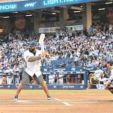 첫 방문 창원NC파크에서 시타하는 테임즈