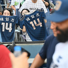 환영하는 팬들, 테임즈 창원NC파크는 처음이지