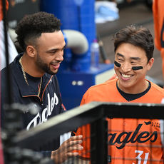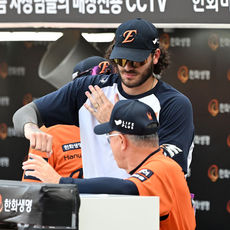 폰세,'김경문 감독 향해 예의 바른 하이파이브'