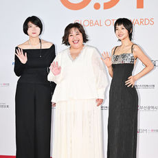 포즈 취하는 ‘스포트 라이트는 나의 것’팀 배우 수시 린, 배우 중 신링, 올리브 팅 프로듀서