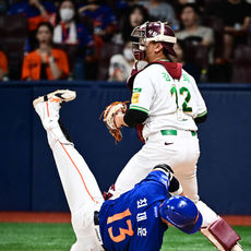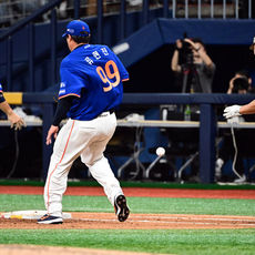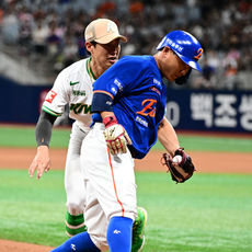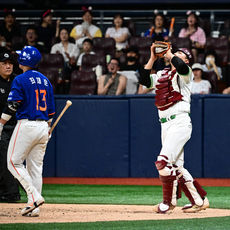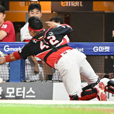 송성문, '공 놓친 후 빠르게 다시 태그'